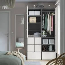 Smooth running drawers with pull-out stop. Adjustable feet make it possible to compensate any irregularities in the floor. Easy to assemble. Material